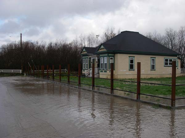 I would have liked to spent today’s entry telling you about the nice Christmas we had. But in what has unfortunately become a day after Christmas tradition around here, our yard once again became a dumping ground for Williams Creek. Up until today it had been a pretty mild winter, with well spaced storms and the creek hasn’t really come up very far. Then last night and this morning a storm hit and from the time I went to work at 9:00 to about 11:00 it went from about half full to overflowing. Lori’s herb garden took the brunt of it again and unless the county gets the Salt River dredged and Williams Creek cleared, we may be forced to build a dyke around our house. Something downstream just isn’t working and there’s no way the creek should have backed up this quickly. I could take this once every ten years or so, but three years in a row is too much, especially since it seems like it’s taking smaller and smaller storms to cause the flooding each year.