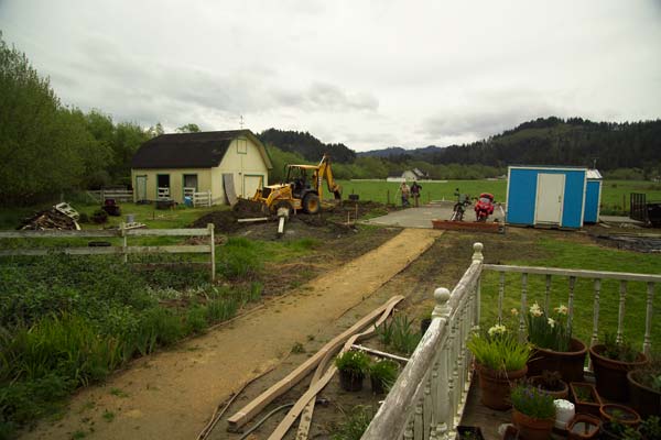 As promised, the crew from DCI Builders showed up this morning to start work on the new garage. Hard to believe that we’re finally proceeding. I think we started this project about 4 years ago. It sure will be nice having the extra space, and having it watertight. I’m really tired of seeing everything rusting away in the garage. We are going to move the existing garage forward, and then add onto the back and sides of it. The back will be a workshop and studio so I can get back to doing woodworking projects, and the side addition will house the motorcylcles and garden equipment. A second door will be added to the existing garage so both the car and the truck can be parked indoors.