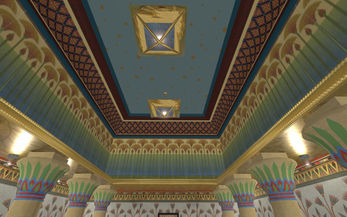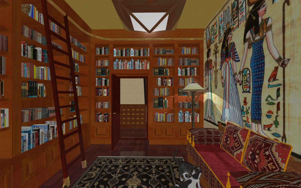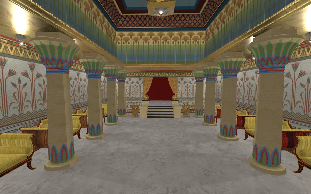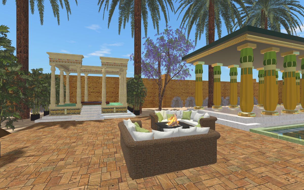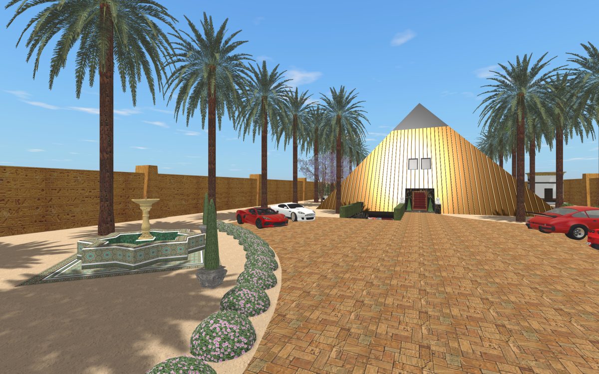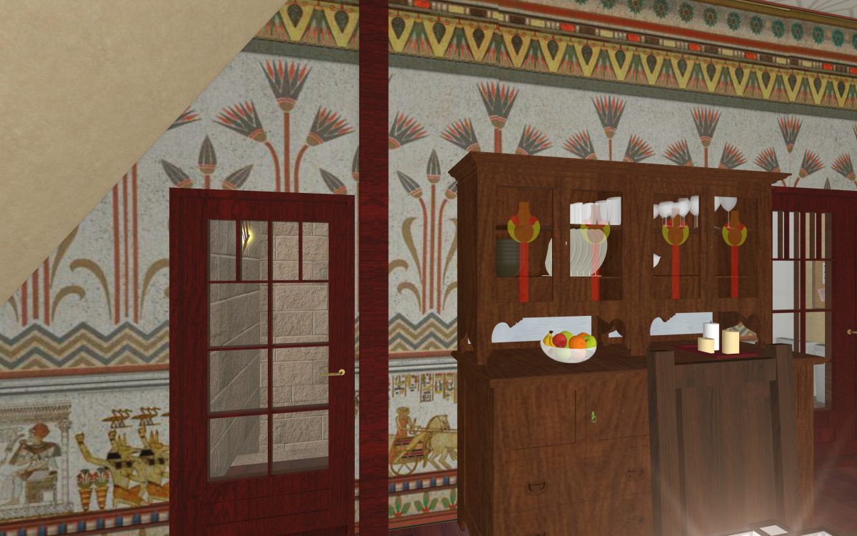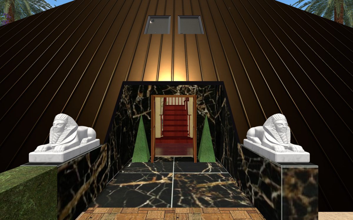 In many of our previous houses, there has been one room done in an Egyptian style. One of my first projects had an Egyptian parlor, the next project had an Egyptian bedroom, and another had an Egyptian styled home theater. Since we’re going around the world designing homes, we thought it was time we design a whole house for Egypt.