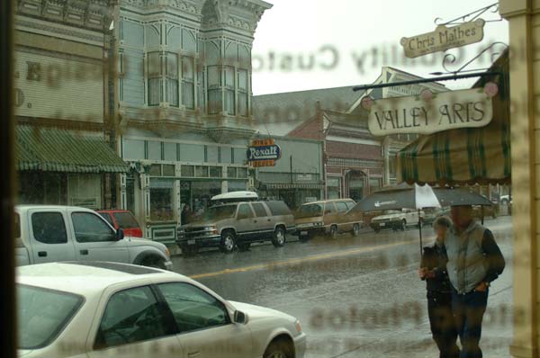 This shot is through the front window of the shop. It has been pouring rain again the last few days, our front yard is back under water, and the creek is threatening to spill over again. I’m ready for this to stop. Last night we did have an impressive thunderstorm roll through, and earlier in the evening there was a really cool rainbow right over the cemetery. Unfortunately, I was in the fire truck at the time so I didn’t get a picture.