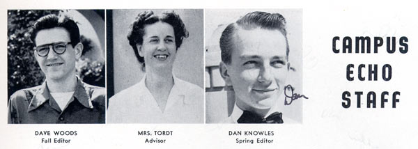 Dad’s mug shows up several times in his yearbook, but this is the spiffiest. Check out that bowtie. On the prophecy page the prognostication for dad was that he “will still be trying to stretch the school finances.” I guess that’s why he ended up as an accountant.