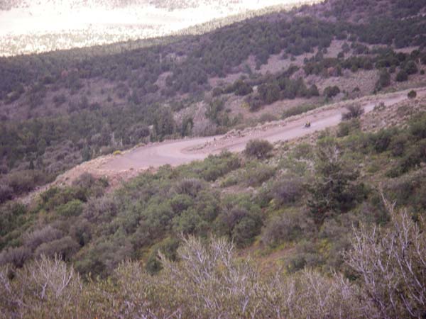 As we headed towards Osceola I recognized the road. On our trip in 1992 we all saw this road from the previous mountain range. Since twisty roads in Nevada are far and few between, for miles we could see this road going over the mountains, knowing that it would be a welcome diversion from the endless, boring flat highway that makes up most of Hwy 50. When we finally got there we were all heartbroken to find that Hwy 50 skirted the mountain range, and continued on a flat path around it. But this trip we had the right equipment for the road so we headed up and over instead of around.