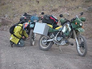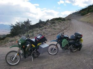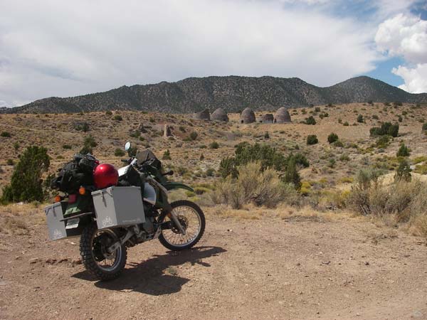 The trip to Osceola was our first off-road excursion on the trip. It was great knowing that we were using the KLRs for their intended use, back road exploration. The road up to Osceola was a very easy gravel ride. There isn’t much left in the town itself other than the remains of the stone general store. But the most interesting spot photographically was an old dump truck whose rusted yellow paint blended well with the local sagebrush that was in bloom.