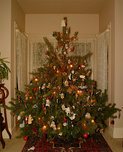 End of the season Knowlesville Posted on January 5, 2002 by MattApril 8, 2019 Time to take down the Christmas Tree. I was reminded by Melody that I never posted a picture of the tree. So here it is. Remember that our ceilings are 10 feet and the bay window is 7 feet wide.