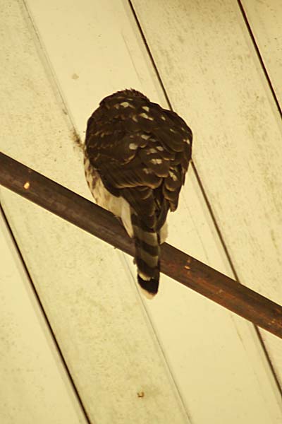 This morning when the commercial building at the fair opened up a hawk flew in. It stayed in the building all day and ended up spending the night. We all hoped it came in to take out the exotic bird exhibit, because those birds were pretty noisy. I don’t usually advocate violence to animals, but after spending 10 days listening to those squawking birds, I was rooting for the hawk. Unfortunately the hawk wasn’t hungry, just confused. He spent the whole day flying around the hall, never figuring out where he came in from, even though it was huge roll up door.