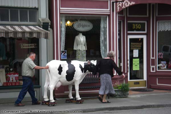 Ferndale’s Talented Bovines Knowlesville Posted on June 3, 2007 by MattJune 7, 2019 One more example of Ferndale’s uniqueness. Where else would you go to see a cow roller skating down the sidewalk?