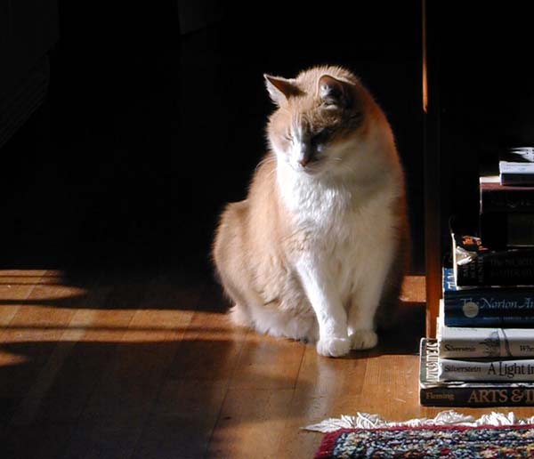 Fred, like most cats, loved sitting in the sun. In our condo, one of his favorite places was the corner of my desk while I was working.