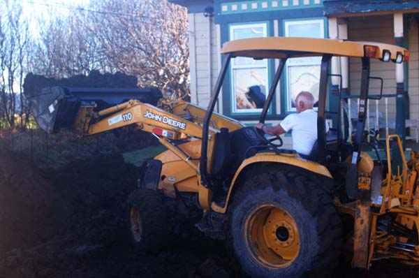 We first met Henry Del Biaggio when I took some pictures of a bull in a flood plain by his house. When we later invited Henry and his wife Carol over to play pinochle, Carol told us she would try to get him to wear a shirt. You see, Henry is well known for wearing a plain white t-shirt, rain or shine; hot or cold (as if it ever gets hot here in Ferndale.) This morning I watched Henry drive his tractor by the kitchen window wearing his trademark t-shirt, and checking the temperature outside I noted that it was a balmy 40 degrees. Certainly not t-shirt whether for me. Henry is moving dirt around, which lately we seem to have plenty of. We now have matching piles in the front and back yards.