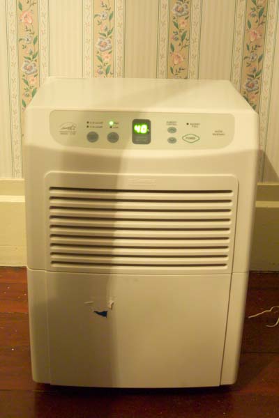 So I drove over to the mall, went to Sears, found the de-humidifiers, which happened to be on sale, and while I was looking at the brochure that explained the differences between the three models they sold, another guy came up looking for the same item, and explained he had the same experience as me in trying to find one. We both wondered why, in a county that has natural built in humidity one would have the need to buy a humidifier, and de-humidifiers were so hard to find. It would be like trying to sell heaters in Phoenix, but not offering air conditioners. So after buying the de-humidifier, I also wanted to get a humidity gauge, only I didn’t know what they were even called. Turns out to measure humidity you need a hygrometer. I found out our bedroom is naturally at around 65% relative humidity. Now with the de-humidifier running while we’re at work, it drops it to about 40%. Pulls about little over a gallon of water out of the air from our bedroom every day.