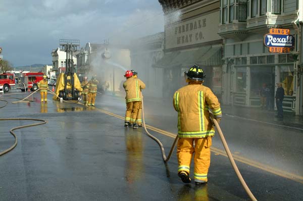 I found out that we also came in last in the bucket brigade. The final “official” event is the jousting, which is really more like a tug of war in the air. Valley Lumber provides two forklifts, and a beer keg is suspended from a wire strung between them. Then two companies try to push the keg by aiming a stream of water at it. Sounds easy enough, except that the keg usually starts swinging wildy from side to side. Some battles ended up being pretty evenly matched and lasted quite awhile, which is really hard on the guys holding the nozzle for each team. We won our first match, but lost our second, so we ended up in second place in this event. In the picture, I am holding the hose on the far left.