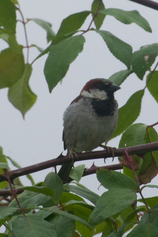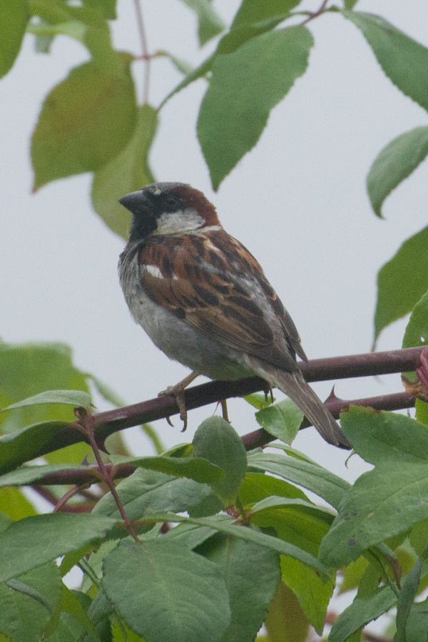 (Passer domesticus) – It turns out this bird has a very appropriate common name. Lori and I had been trying to identify the little bird who sleeps up in the corner of our front porch every night. He doesn’t have a nest there, he just tucks into the corner under the roof, making it hard to see what he actually looks like. Just as I was planning to set up my camera to remotely shoot him, I saw him in the rose arbor and manage to get some photos and we were able to finally identify him as a house sparrow. Since he’s also one of the few birds that I know is the same bird when we see him, I decided to name him Carlton, as he hangs out by our front door. (Rhoda TV show reference if you don’t get it.)