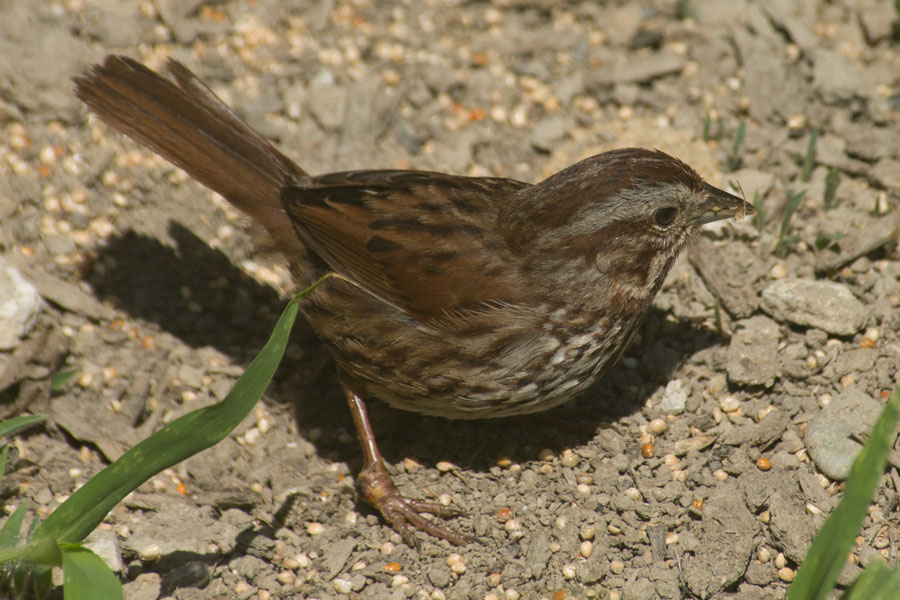 (Melospiza melodia) – These sparrows are the cleanup crew, they love to forage on the ground for seed, insects and spiders, so we have started seeing them at the base of the bird feeder eating the seeds all the rest of birds spill. Nice to know some of that seed is going to good use and not just turning into weeds I need to pull.