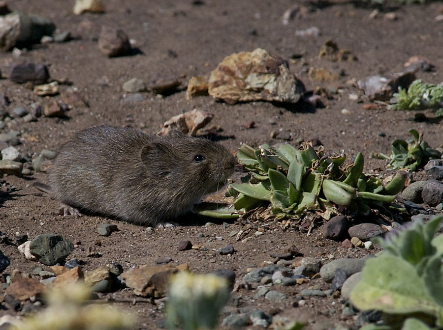 (Microtus californicus constrictus)6-7.5 inches in length, with a 2 inch tail.