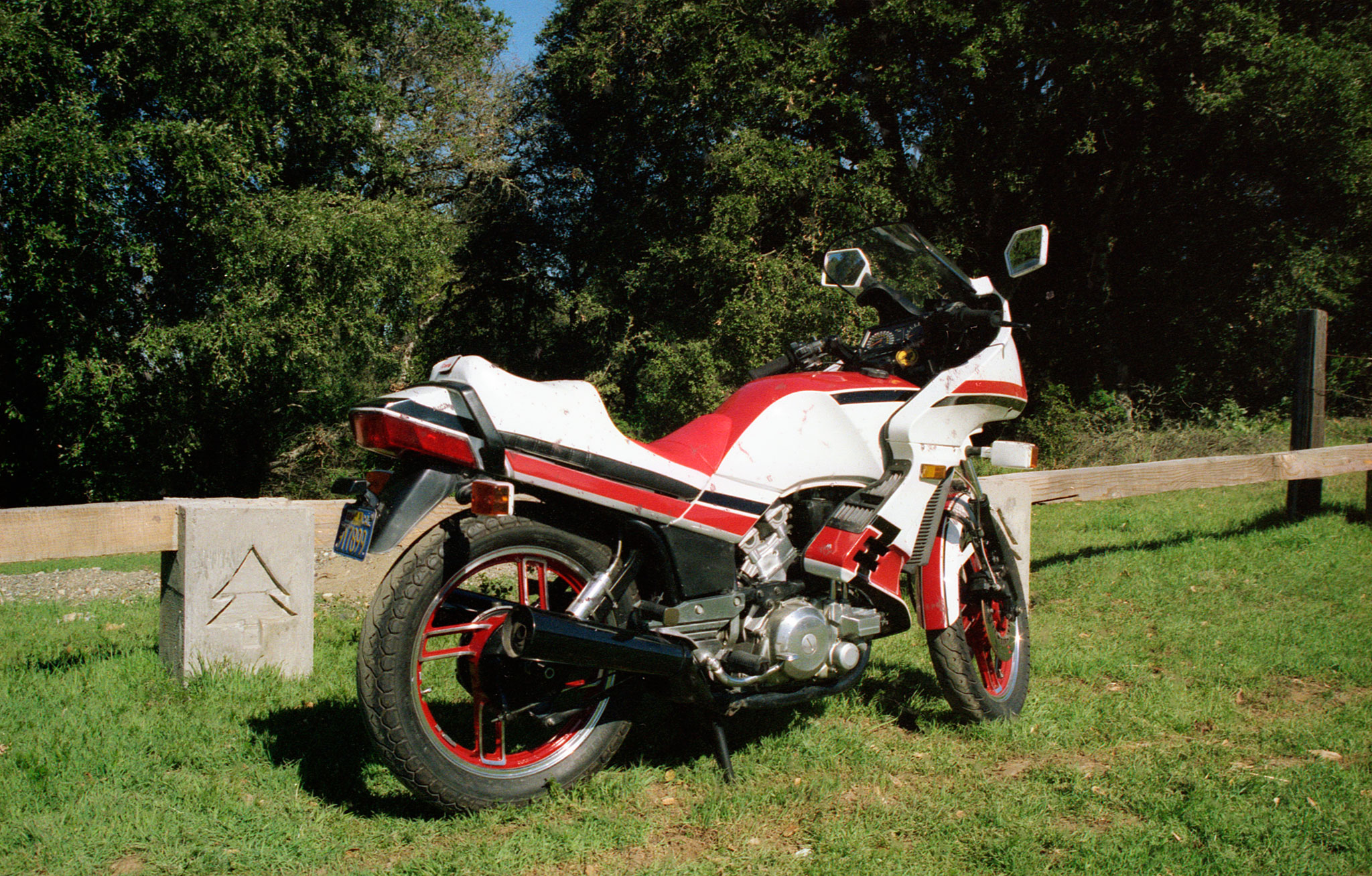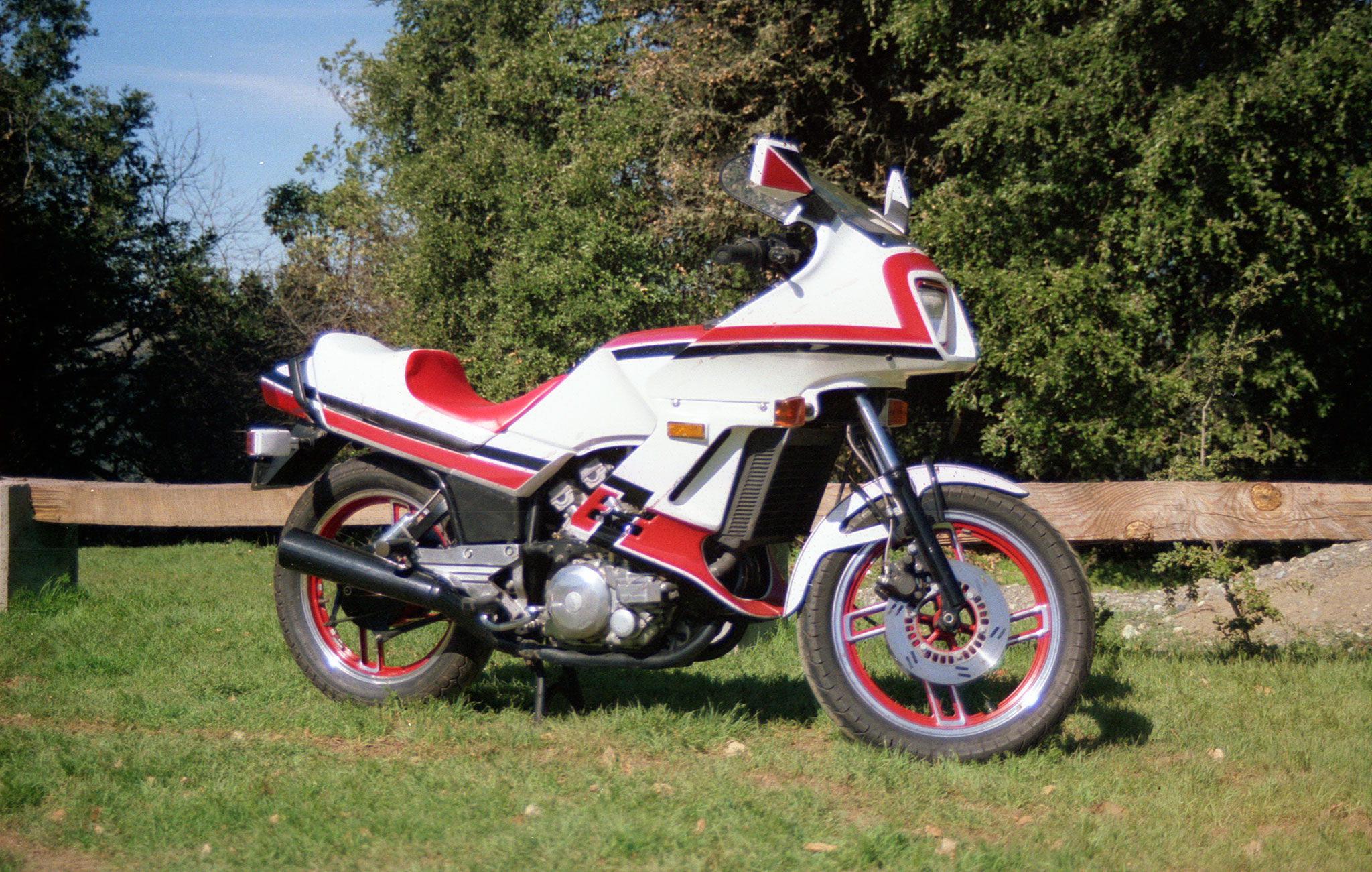 In 1984 my wife was going to school in LA, 400 miles south, so I wanted to get the fairing kit for my ’82 Vision but they were sold out of them. Yamaha was blowing out leftover bikes, so I traded in the ’82 for an ’83. In addition to the fairing, the ’83 had two discs in front, lower bars, and the pegs were moved to the rear. One of its best innovations was the fairing which had ducts that could be opened to direct warm air off of the engine onto your legs. Great for the winter. This bike became my favorite and I kept it even after buying several other bikes. Unfortunately it had a well deserved reputation for eating starters and stators, and after putting 60k miles on it, I regretfully sold it.