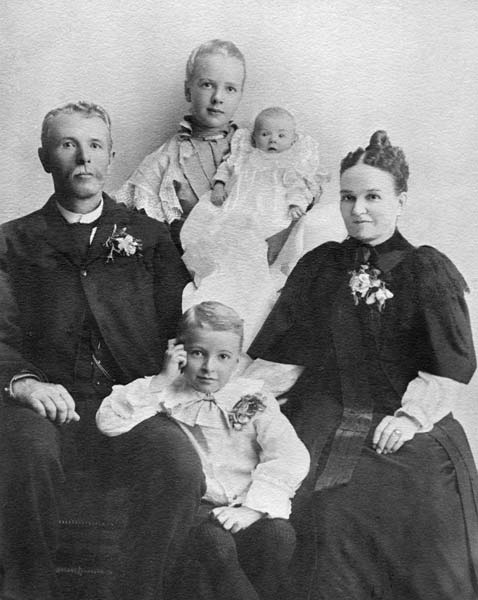 I know, I’ve been a bit behind in my updates lately. Yesterday I paid a return visit to cousin Eleanor’s house in Bridgeville to scan some of her family photos. Today’s picture is of our great-grandfather John Knowles, and his family. Wife, Frances Marion Smith Knowles, and their three children, from oldest to youngest, Florence Eliza (Eleanor’s mother), James Warren (our grandfather), and Muriel Eleanor (Aunt Muriel to us kids). I am absolutely tickled to have a photo that links our family to the Victorian period.