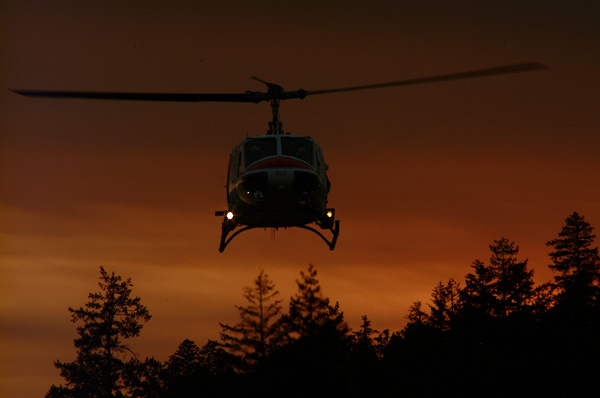 Day 21 of the fires and once again I was down in Redway with a crew from Ferndale to provide crash rescue support for the helibase. The second time it was a bit easier because we knew what to expect, and even though the helicopter count went up to 12, there weren’t as many flights. The two fires are still growing, Honeydew is at 11,000 acres and the Canoe fire is approaching 10,000 acres. The Honeydew fire is contained on the west flank, as the Pacific Ocean is doing a great job there for us. At the end of the day we could hear on the radio that supplies where being unloaded at the Women’s Garden Club Grove which is on the Avenue of the Giants. Not a good sign.