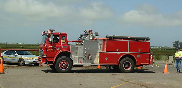 One thing that I don’t think I have mentioned on the web site yet, but some of you may know, is that I am a probationary member of the Ferndale Volunteer Fire Department. Today I attended a training session where among other things, I got my first chance to drive a fire truck. They laid out a course where we had to perform several manuevers in forward and reverse, while trying to get the truck as close to certain cones while not knocking them over or going out of bounds.