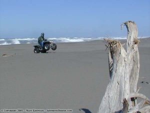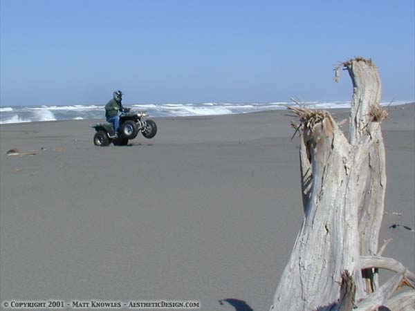 Since the KLX is in the shop getting the kick starter repaired, Lori and I took the ATV down to Centerville beach and took turns on it. While Matt had fun driving like a mad-man, Lori is looking forward to the day when she can ride her horse up and down the beach. This week she’s been practicing horse ownership by grooming Barnaby early each morning. Barnaby is the horse that pulls the carriage in town.