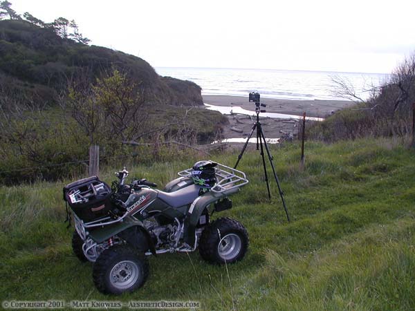 Made a trip down to the beach at Guthrie Creek with the ATV. I’m going to have to start thinking about taking a tax deduction for the vehicle as it makes a very nice cargo carrier. It was a lot easier just riding down than having to backpack everything down and then back up. I took this shot with the digital, but I should have the real shots next week as I shot them with my 35mm.