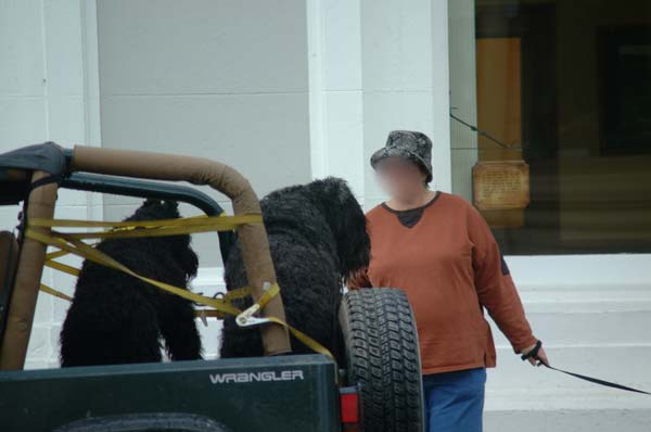 I was looking out the window of our office when this Jeep drove up with two of the shaggiest creatures I have ever seen. The most common animals to be seen in the back of trucks in Ferndale are of course dogs, but it’s not uncommon to see calves, sheep, and other farm animals either. I was trying to figure out if these whooly beasts were dogs, calves, baby buffaloes (there are buffalo being raised in Ferndale), bears, or maybe I was even a witness to some weird yeti sighting. Finally when this lady came by walking her dog, the two whooly creatures barked at her finely coiffed specimen, probably mocking it’s hairstyle. So I guess they were dogs after all. I’m not sure what breed, but I bet Linda will provide the missing answer.