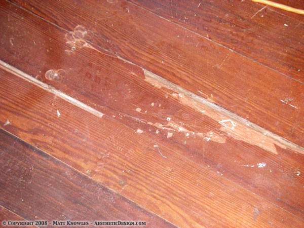 We pulled up the old carpet in the office room today and found a layer of particle board under that. As we pulled up the particle board, we found that the original flooring was in pretty good shape, which was really great news. Curiously though, in the middle of the room there was one sheet of plywood instead of the particle board. Saving that one for last, we found out why when it was pulled up revealing that the floor was pretty busted up there. During the 1992 earthquake our house fell off the foundation and lots of the flooring was damaged. Some rooms don’t have any original flooring left, and some like the hallway show signs of being repaired. Since the hallway has some original flooring left but still needs to be repaired, we plan to tear it up and use it to repair the busted flooring in the office.
