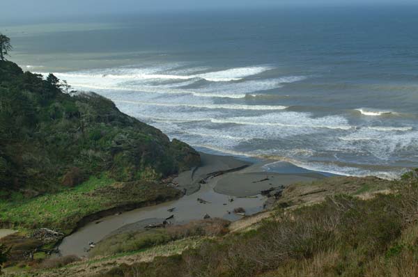 This picture really should have been on last month’s page, but I’m so far behind I decided to just use it to start this month. We had another in a series of big wind storms hit the coast, and in addition to removing a few more shingles from our roof, large waves were promised. In the 20-30ft range they said. So when it cleared up in the morning in between fronts, I thought it would be the perfect opportunity to go check out the waves. Knowing how dangerous it can be at the beach under those conditions, I decided to head out to my favorite view point, the bluff above Guthrie Creek. Two years ago several of you received a print of a sunset taken from that bluff. Well now that print is even more of a limited edition because the whole bluff recently fell into the Pacific Ocean. I guess I’ll have to find a new favorite spot.