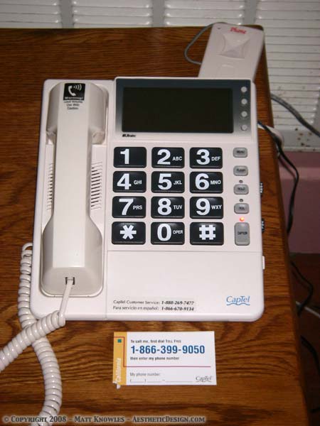 The little box above the phone is part of the Silent Call system we installed, and it transmits a signal that the phone is ringing.