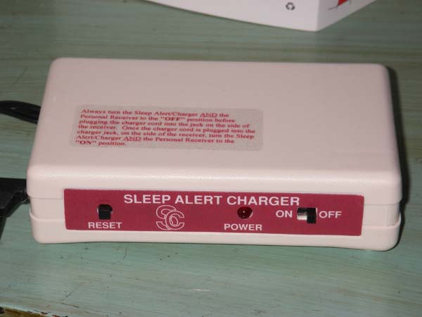 At night, the pager gets plugged into this device which recharges it. There is also a vibrator plugged into it that sits under her pillow, so if any of the transmitters go off at night she is woken up by her pillow buzzing madly. Even before she lost her hearing, Lori could sleep through most alarm clocks going off, but the vibrating pillow is very effective. So that’s the full tour of the Silent Call system.