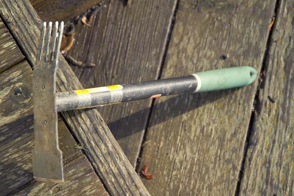 This weapon has become our favorite weeding weapon. So much so that Lori and I fight over it. I went back to the store where we bought it to buy another one and they’ve been out of stock on it for weeks. So I guess others liked it too. The blade end is great for whacking the tops off of horsetails, or tilling the soil. The tanged end makes it easy to pull weeds by their roots. Just drive the tangs into the roots, and yank. Now if it would just stop raining so we could actually get out and pull weeds.