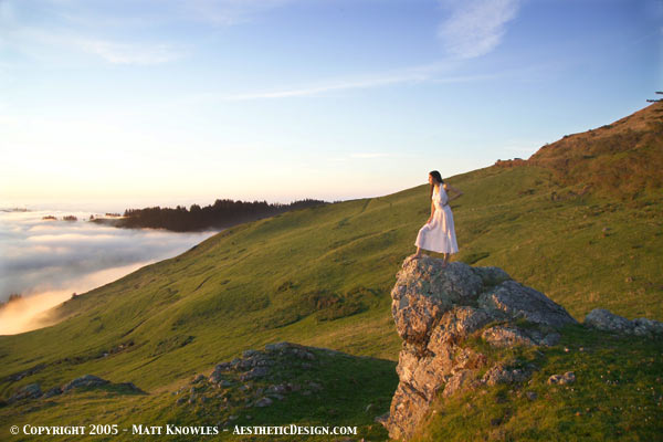 It’s finally getting back to the season that I love most, and a week early we’ve been having some fine spring weather. After helping put out a fire in a mobile home this afternoon, I went over to the Lost Coast with Mabel to take some pictures. The light was changing during the whole shoot making it very difficult to get good exposures but we did get some good shots. Around 5:00 it clouded up pretty heavy and it was too cold to continue so we started back to Ferndale. On the way over the Wildcat, we saw a very pretty sunset over the fog that was rolling in. It was at a spot that I’ve always wanted to photograph because it is so picturesque, and this seemed the perfect time to do it, so we found a place to pull over and took a number of photos. Several other cars slowed to look, and I’m not sure if they were checking out Mabel, or the sunset.