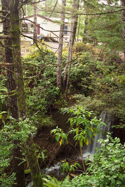Well, actually it’s a double wide, but the setting is so nice you don’t really notice. On our way out of Woodinville, we crossed the sound to visit Lori’s uncle in Lilliwaup. How nice it must be to have your very own waterfall. The sound of the rushing water was very relaxing. I wish our creek had the same effect. Unfortunately, when we hear our creek, it’s usually not a good sign.