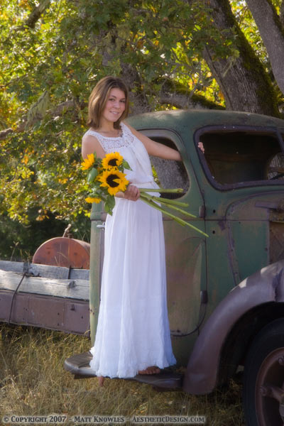 I met Valerie at the fair, as she was one of the dairy princesses handing out the ice cream samples at the Humboldt Creamery booth that was next to ours. Valerie impressed me by staying cheerful throughout the fair, something I sure wasn’t able to do. She wanted us to do her senior portrait up at her parent’s ranch in Kneeland so I took the opportunity a couple of weeks ago to KLR up there. At the fair Valerie was very girly, always wearing nice dresses. At her ranch, she was wearing camo’s and had just come back from shooting a buck. Quite a different image. Well the ranch was very pretty, and when we went back today to take the portraits, this was one of my favorite locations that Valerie picked out.