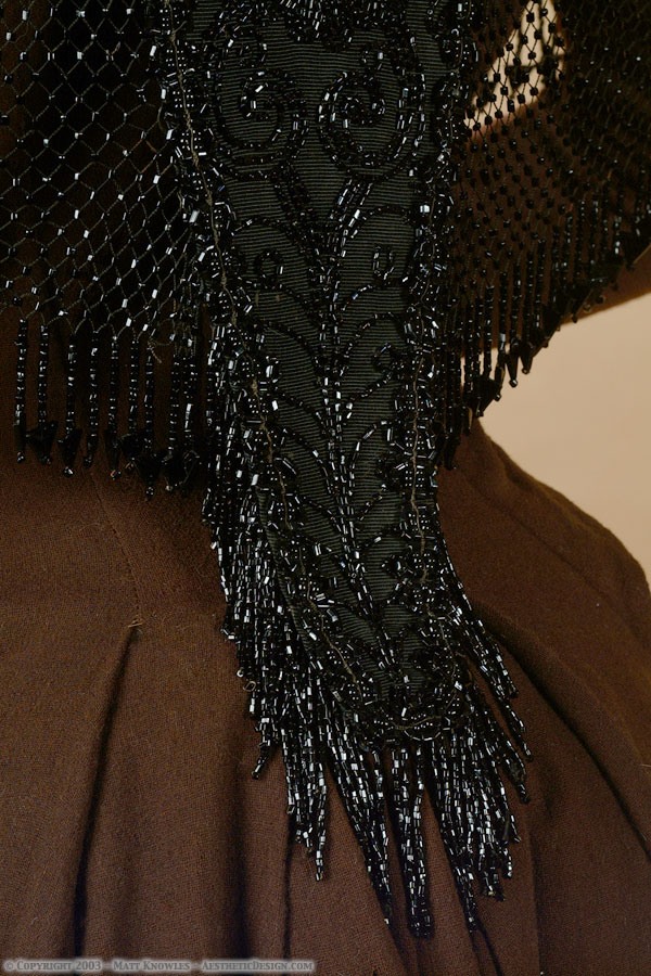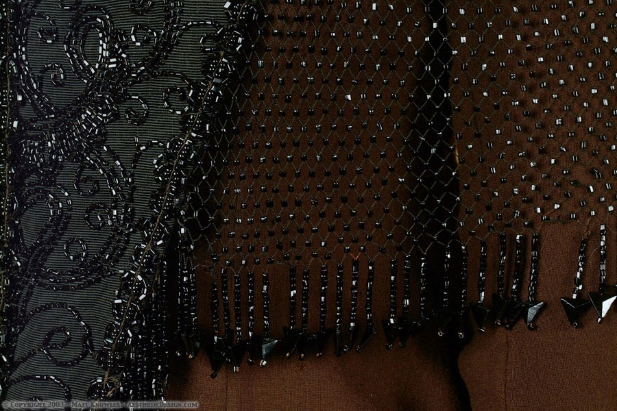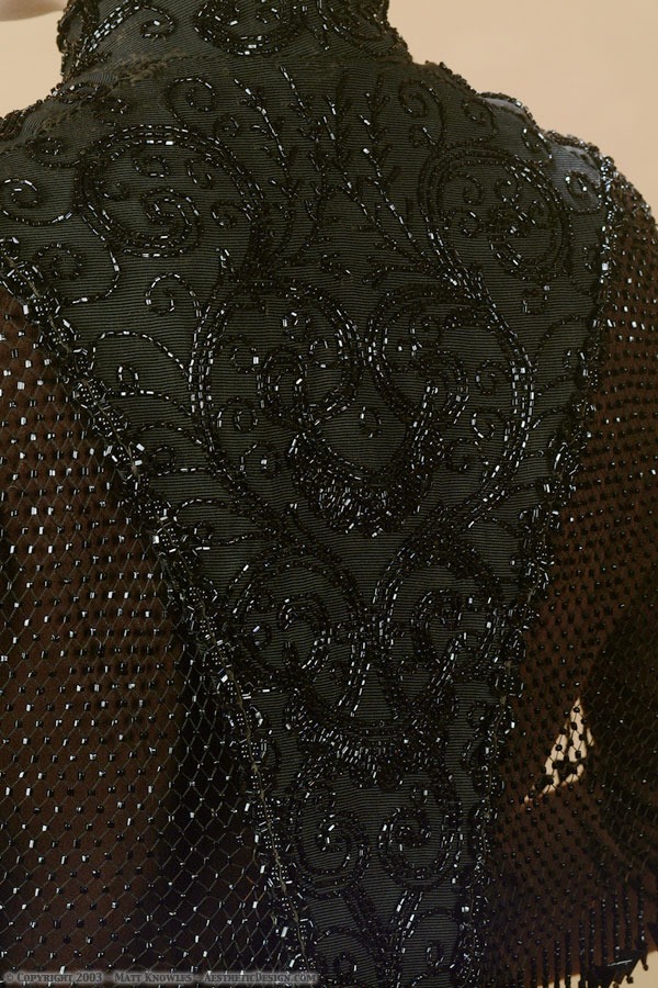 This beaded capelet was purchased by Matt while he was on a motorcycle tour through the Midwest. The front and back are almost solid beading, and the sides are a beaded net.