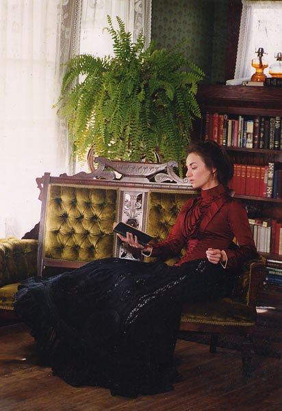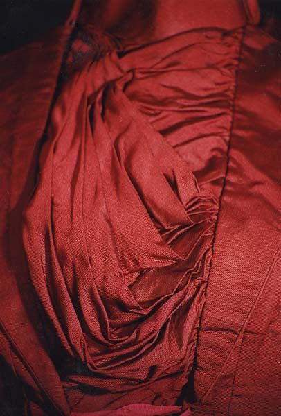 This bodice was purchased in Bath, England at an antique store that had a huge collection of Victorian clothing. It was also the first garment from the collection that Matt photographed. We met Heather during a fashion show and seeing how petite she was we asked her if she would be interested in modeling some of the clothes in Lori’s collection. At first the photos were put into a scrapbook, but later we decided to put them on a web site so everyone could enjoy them.