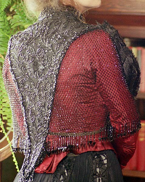 It pairs well with the 1880 Black Beaded Capelet shown in the last three photos.