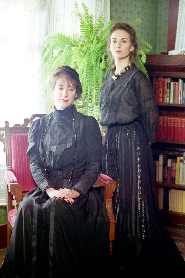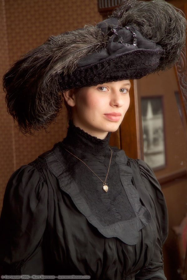 The last two photos show Lori wearing the dress during our first photoshoot with a model. The last photo shows the difference between the 5′-0″ Heather who was the perfect size for most of our Victorian collection, and 5’10” Lori.