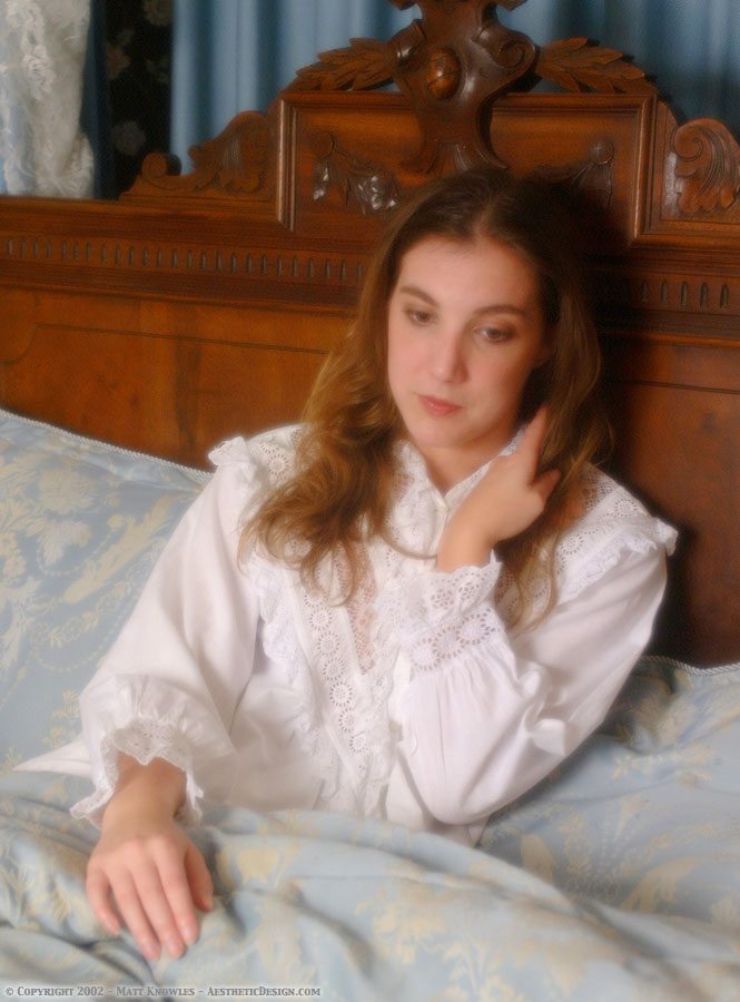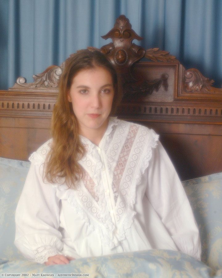 This turn of the century nightgown features crocheted lace and cut-work in the yoke and on the cuffs.
