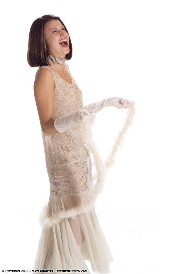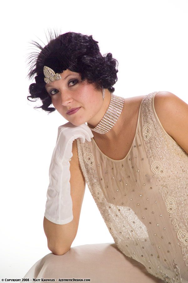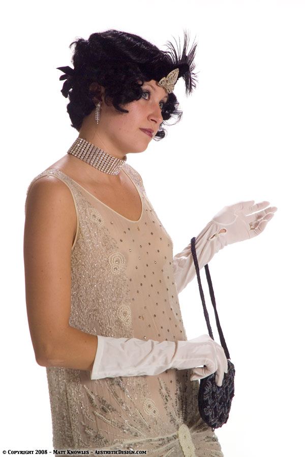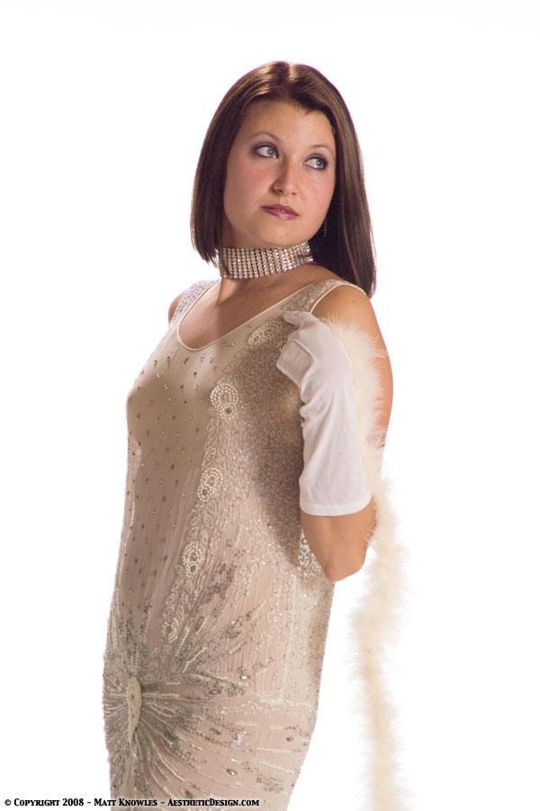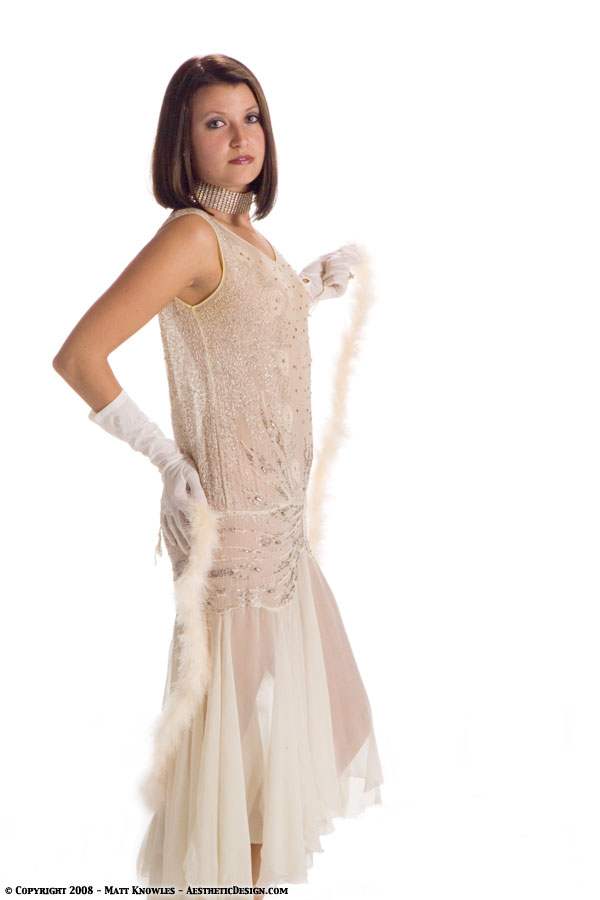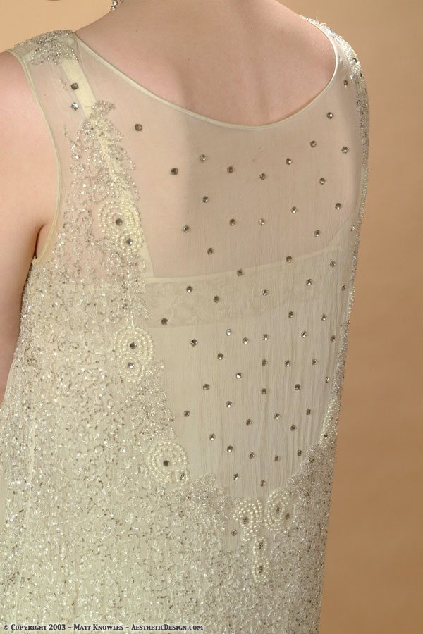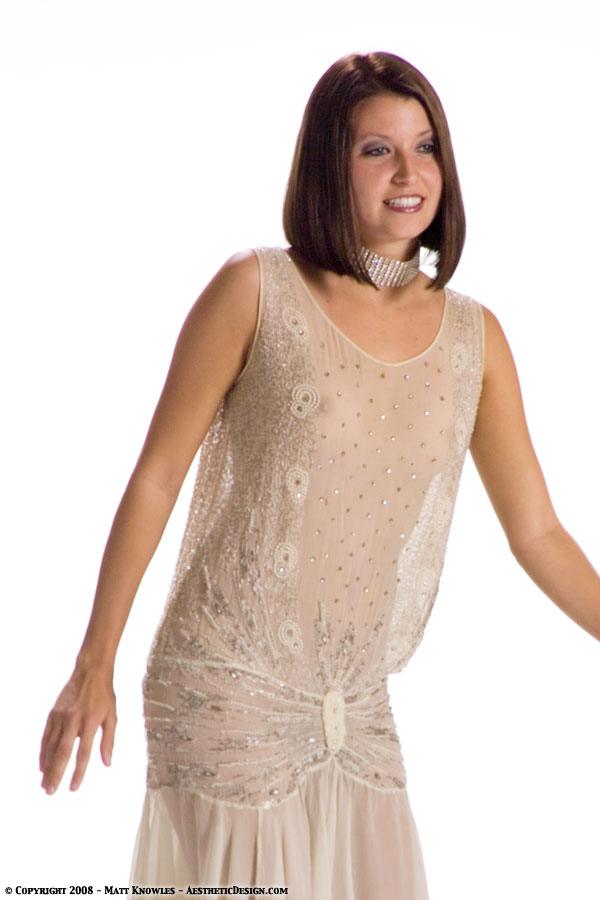 This is the third 1920s beaded dress that was added to the collection. Jessica modeled this dress in the studio wearing vintage lingerie underneath, while Becki showed off how sheer it is.