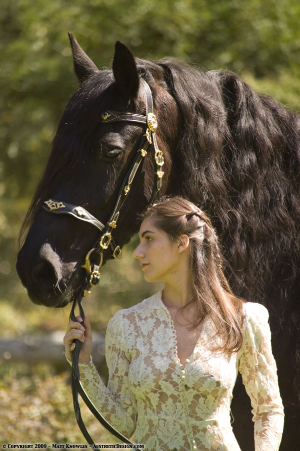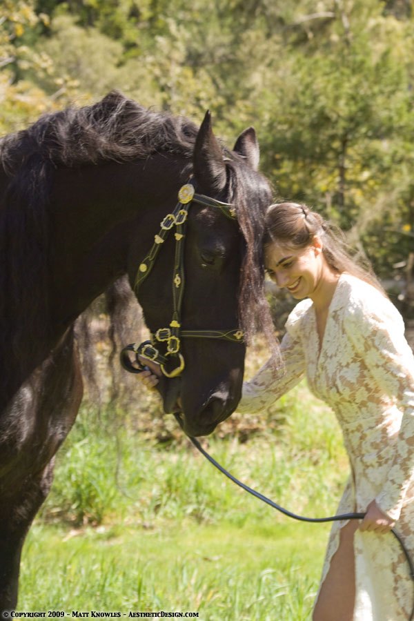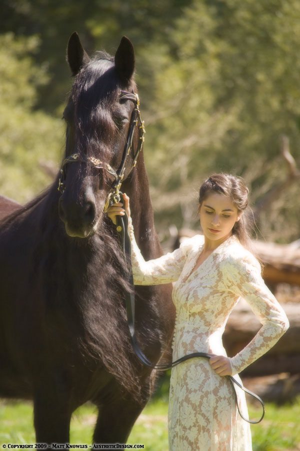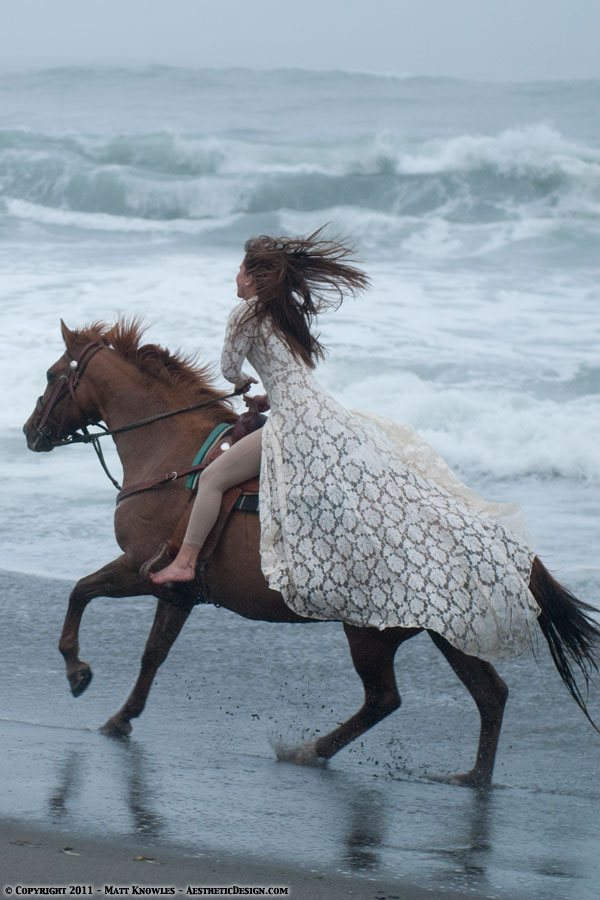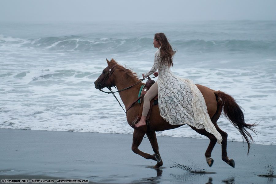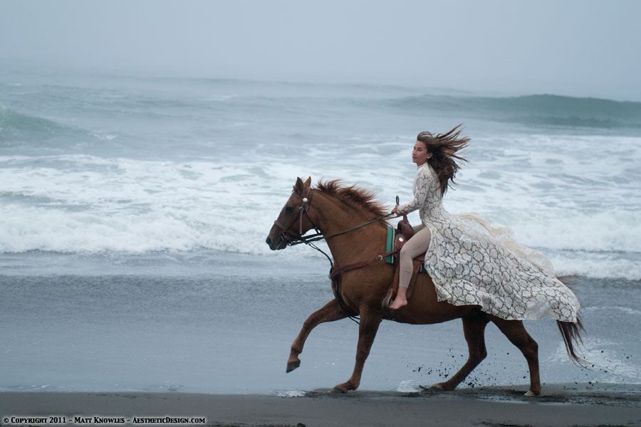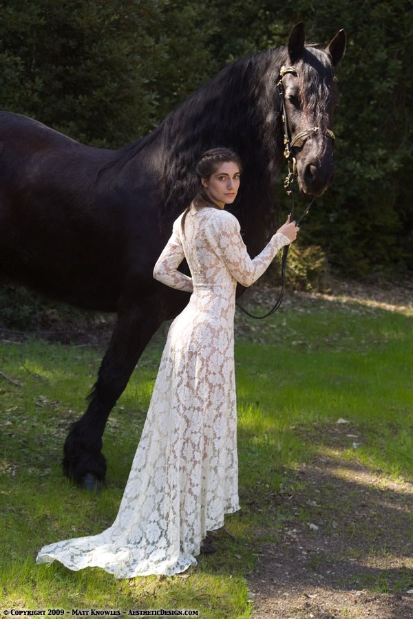 Since this wedding dress has a long train, it also seemed like the right piece to use for for two horse related photoshoots, first with Natalie and a beautiful Friesian, and then later with Kayla and her horse Lady, on Centerville beach.