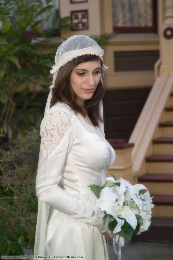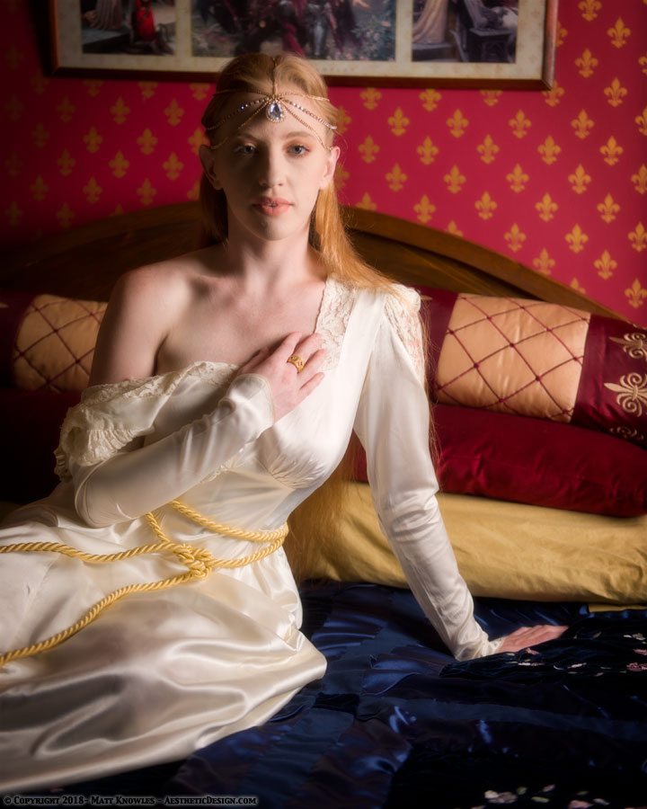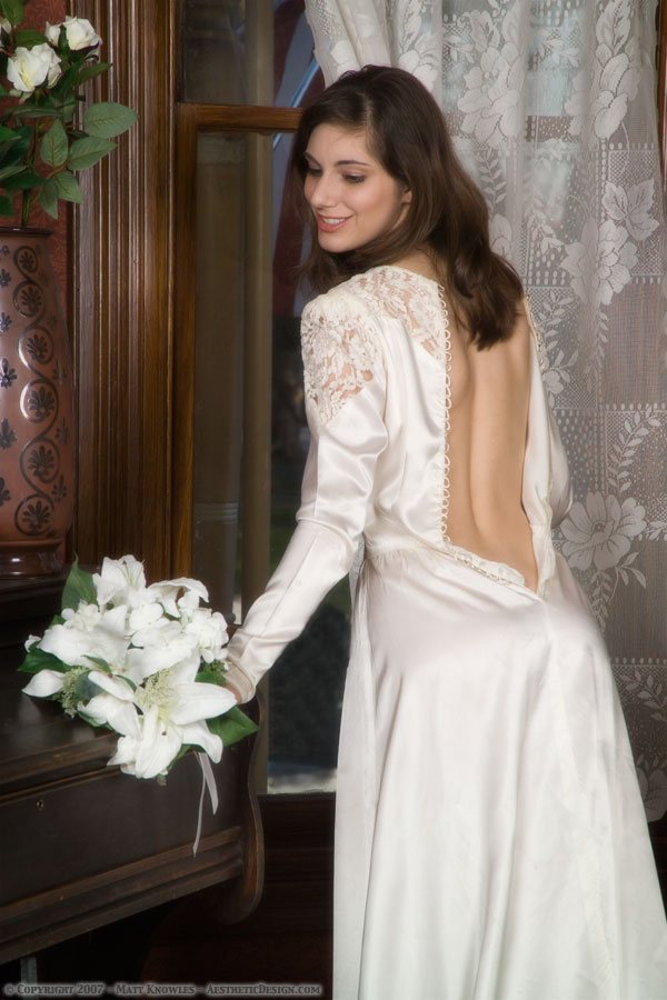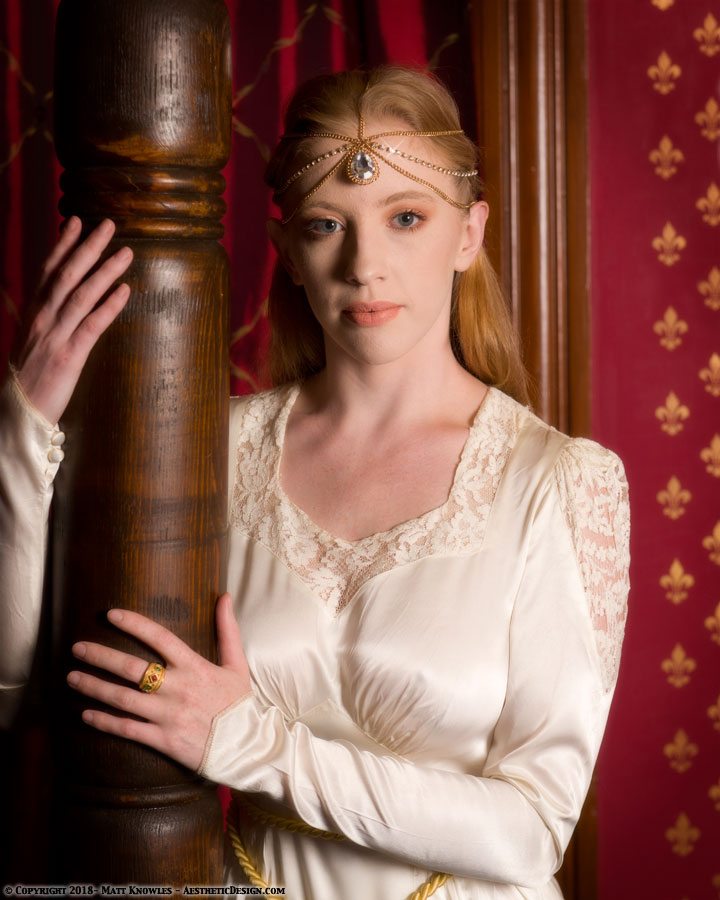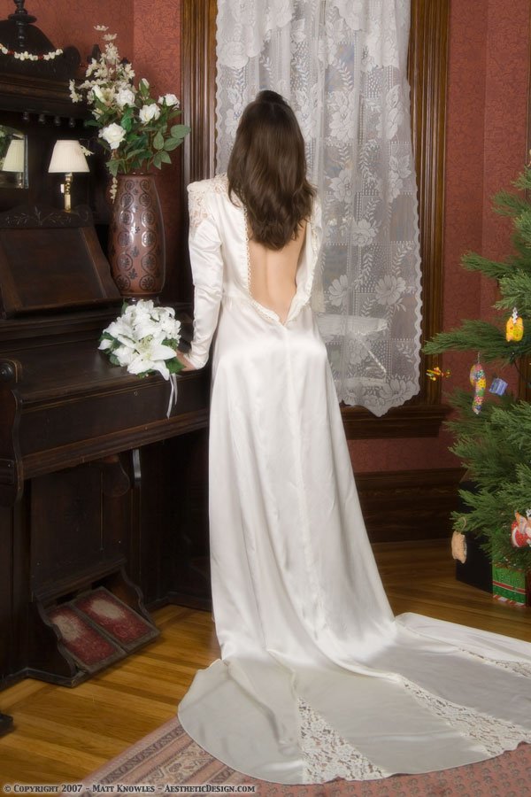 The second shoot, Ayrica modeled it in the studio, and then recently after finishing our Gothic Revival bedroom in our Victorian, Margo used the dress to play princess.