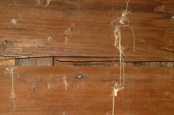 I think I’ve mentioned before the contruction of our walls in our 1888 Victorian, that they are made up of redwood 1″x10″. No lathe and plaster here. Well the commercial buildings on Main Street take that a step further. Instead of having studs spaced 16″ apart, they are spaced 0″ apart. The middle section of the wall is made up of 3″x6″s nailed to each other. Then the 1″x10″ get nailed to each side of that. So you end up with a wall 8″ thick of solid redwood. And that’s why even with earthquakes and fires, these buildings are still here. But if you were to demolish them (ugh, the thought!) they would be worth more for the old growth redwood they contain than the actual real estate market value.