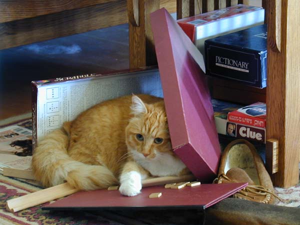 Wow! I got to see Lori all day today. No rehearsal, no show, how nice! We slept in, she made me a nice breakfast, and then I worked for a bit. While I was working, Ricky decided to play a game of scrabble, but he couldn’t get any of the other cats interested, so he decided to build a fort instead. Later we went to look at Abigail’s Elegant Victorian Mansion. The innkeeper had contacted me regarding the VPA website, and didn’t realize we were local. I’m hoping to use their house for some photoshoots in the near future. They’ll be able to use the photos on their web site and I get a great location.