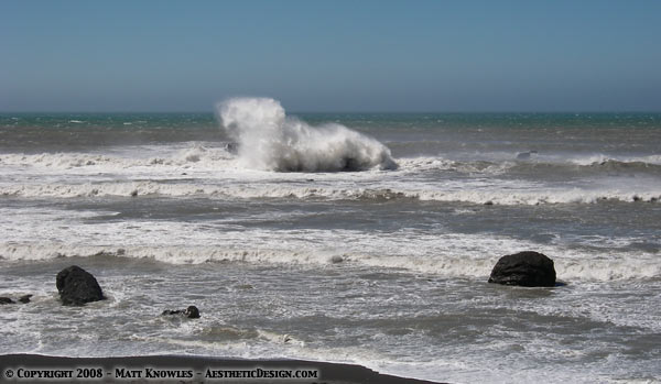 On the way back from Petrolia yesterday it was really windy along the coast. I stopped near Cape Mendocino to take some photos of the crashing waves, and even with both feet planted, I almost dropped the KLR because the wind was blowing so hard. The waves weren’t that high, but when they impacted with the rocks the wind really caught the spray and that was pretty spectacular.