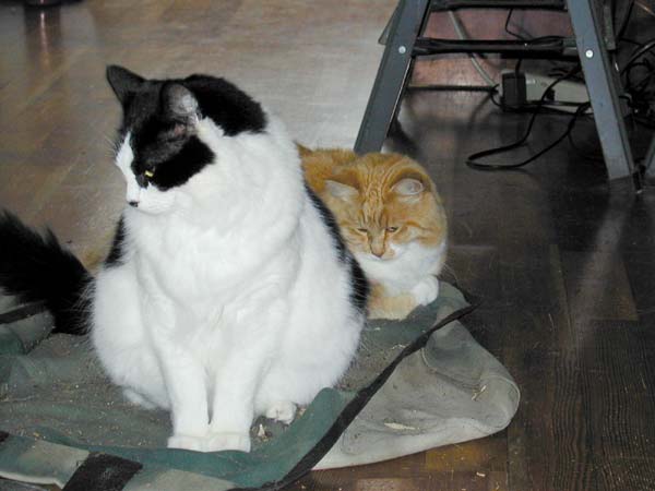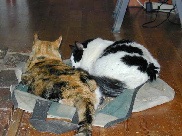 There’s something about our wood carrier that is irresistible to our cats. I’m not sure what is so interesting about it that when it isn’t filled with logs, there’s usually one or more cats sitting in it. Tonight we rented Catch Me If You Can (which I highly recommend) and during the movie I took this picture of Meg and Ricky sitting on the carrier. Later in the evening it was Meg and Galen’s turn, and then just to even it out, Ricky and Galen took their turn.