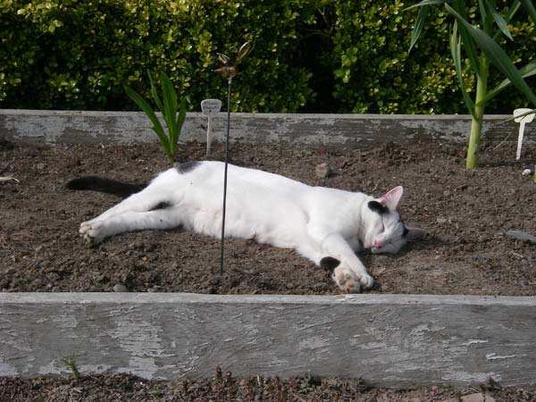 Working in the Garden Knowlesville Posted on May 6, 2006 by MattMay 28, 2019 oday was a nice day to be outside working in the garden. Or not. Artie figured that if it is called a raised bed, it must be a nice place for a nap.
